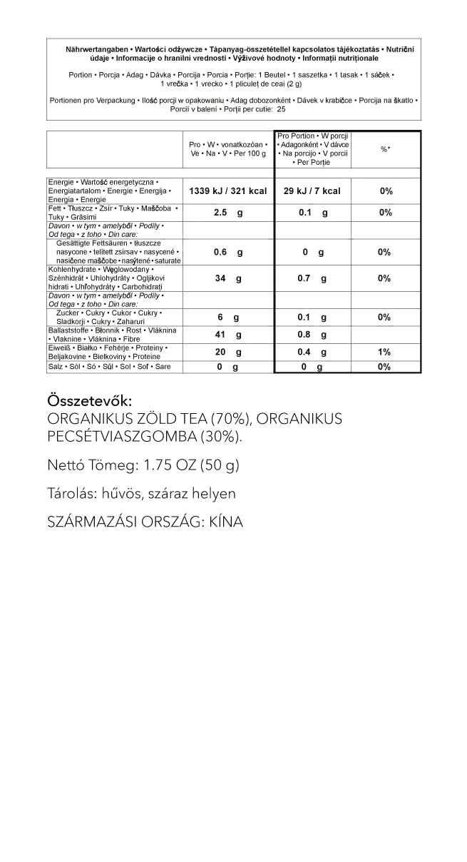 Vigyen egy kis zent mindennapjaiba egy nyugtató csésze organikus zöld teával. A legjobb organikus zöldtea-levelek, valamint a flavonoidok, és hírhedt organikus Ganoderma lucidum gombánk egyvelegéből született ízletes tea garantáltan felpezsdíti a napját.